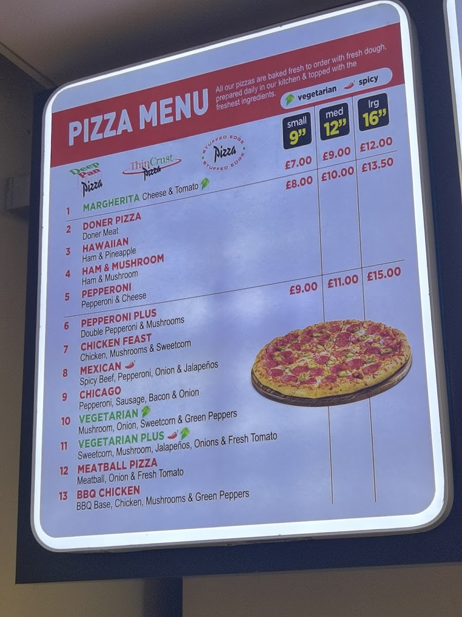 “ Ordered pizza (peppeoni), not the first time either. Delicious. Hot. Better tasting than Dominoes Pizza by a country mile, and amazing garlic mayo dip. ”